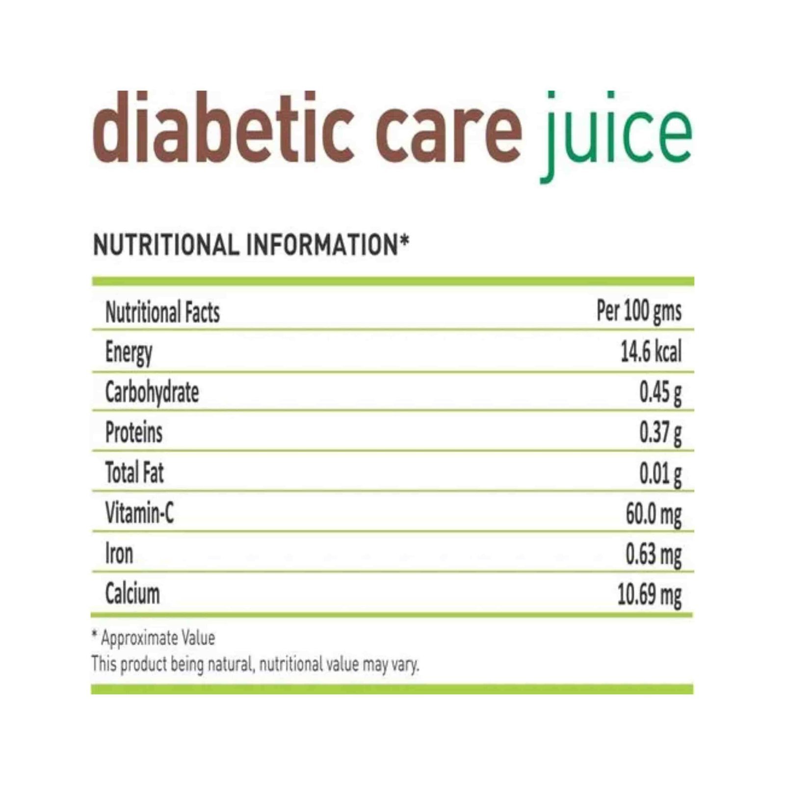 Ingredients of Srishma Diabetic Care juice: